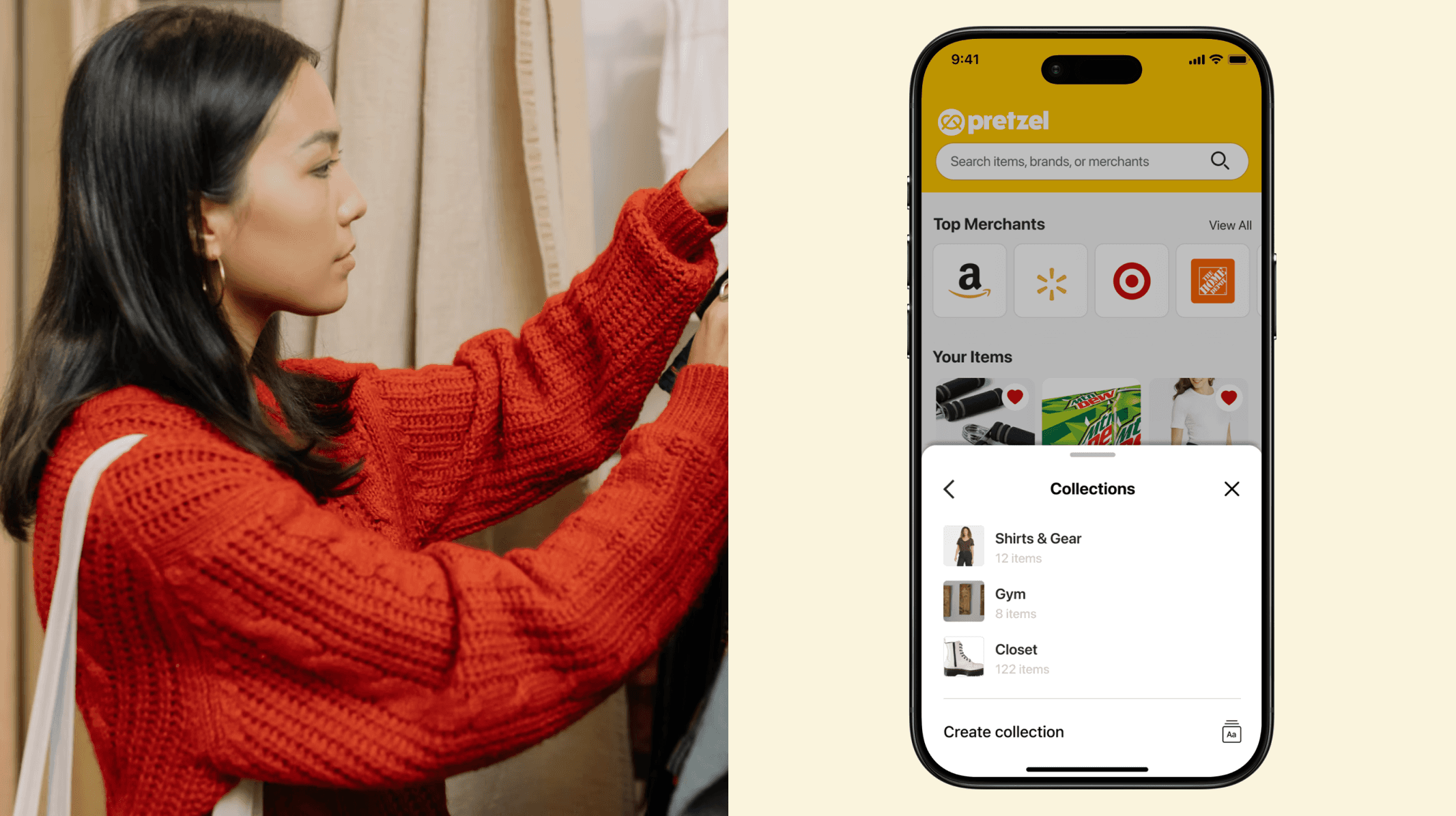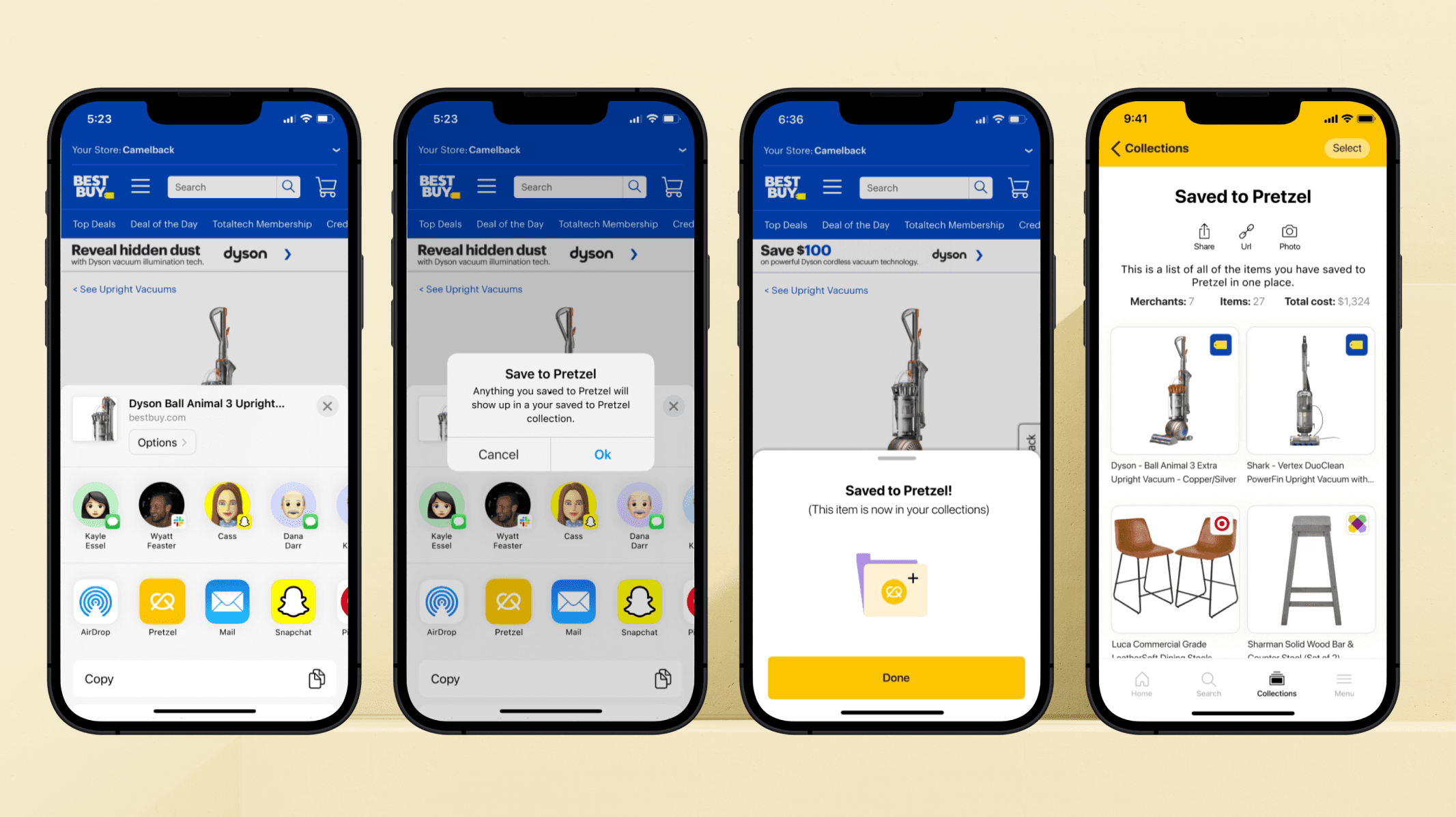 The "Save to Pretzel" feature let users pull products from any website into personal collections, via share sheet, link, or photo upload. This made it easy to compare options across stores before buying, like a wedding registry for everyday decisions.